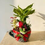 Bu benzersiz ve göz alıcı teraryum, ev veya ofis dekorasyonuna taze ve canlı bir dokunuş katmak için tasarlanmıştır. Bir fincan formunda şık bir saksıda yer alan bu teraryumda, farklı bitki türleri yer alır. İçeriğinde 1 adet yapraklı zarif bitki, 1 adet renkli çiçekli bitki, 1 adet sukulent ve birkaç dekoratif taş ile süslenmiş 1 adet minik süsleme objesi bulunmaktadır. Ayrıca, teraryumu tamamlayan ve görsel cazibeyi artıran yeşil-beyaz kelebek figürü ve kırmızı kurdele de bu tasarıma eşlik eder.