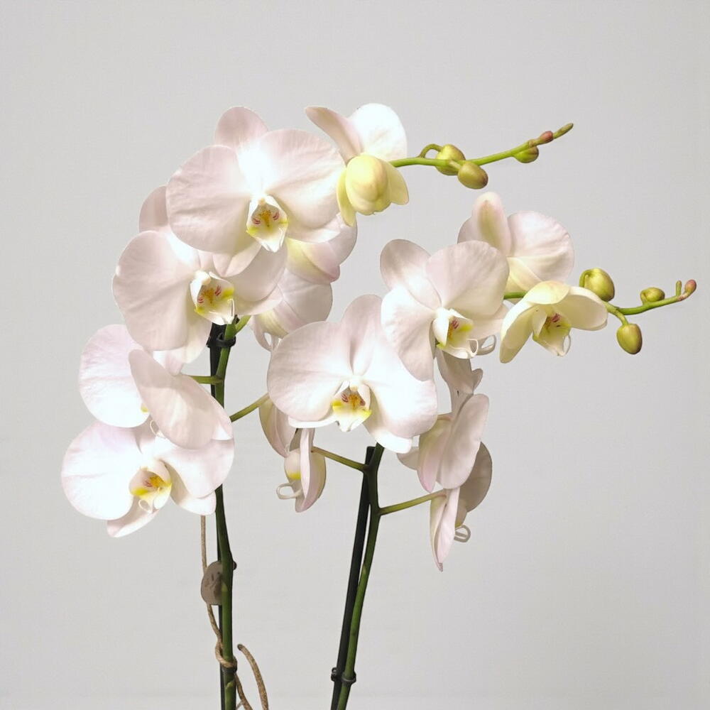 Bu zarif Phalaenopsis orkidesi, saf beyaz çiçekleriyle bulunduğu ortama zarafet ve sakinlik katar. Minimalist ve şık tasarımıyla hem ev hem de ofis dekorasyonuna mükemmel uyum sağlar. Göz alıcı güzelliğiyle özel günlerde hediye olarak da ideal bir seçimdir.