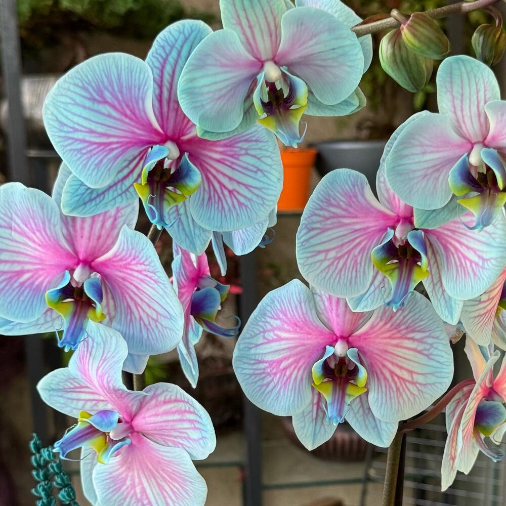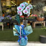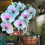 Blue Pink phalaenopsis orchids Mavi pembe orkide 2 dallıdır, Renklendirme dallarından çiçek boyası enjekte edilerek yapılan özel bir orkide türüdür. Boya ile yapıldığı için her seride renk tonunda küçük farklılıklar olabilir. Saksıda 2 dal vardır ve her dal üzerinde en az 3 çiçeği açmış 7 + çiçek vardır.