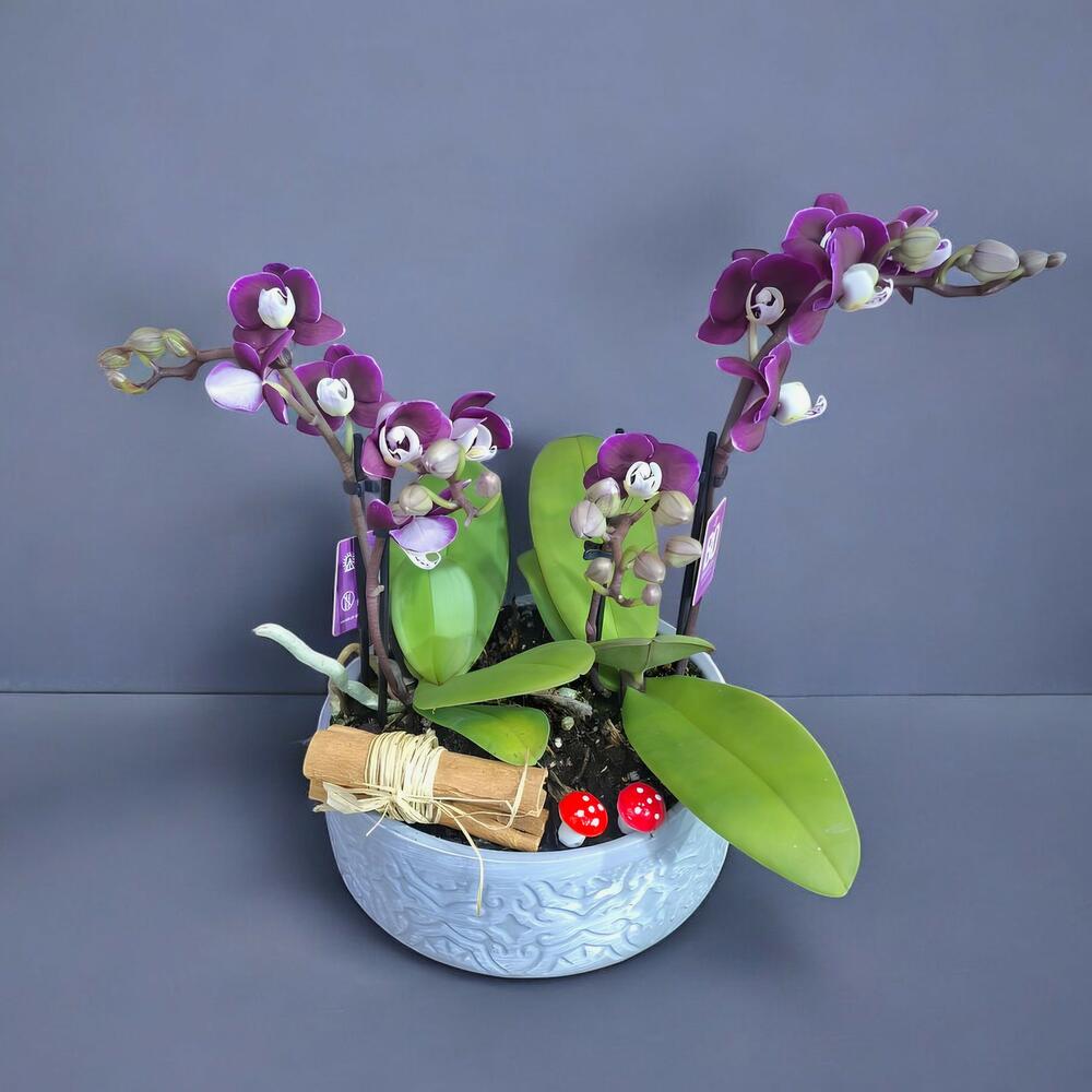 Mor Zarafet Orkidesi, egzotik görünümü ve zarif çiçekleriyle bulunduğu her ortama sofistike bir dokunuş katıyor. Özel seramik saksısı ve dikkat çekici mor çiçekleriyle sevdiklerinize anlam dolu bir hediye sunabilirsiniz.