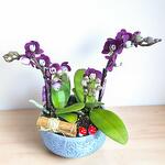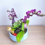 Zarifliği ve göz alıcı mor renkleriyle dikkat çeken bu Mini Çiftli Orkide, nakledilmiş formda sunulmakta olup ek saksı değişimine gerek kalmadan doğrudan sergilenmeye hazırdır. Dekoratif gri seramik saksısı ve yanında yer alan doğal tarçın süslemesiyle hem modern hem doğal bir görünüm sunar. Özellikle ofis, ev ve hediye amaçlı tercihler için ideal bir seçenektir.