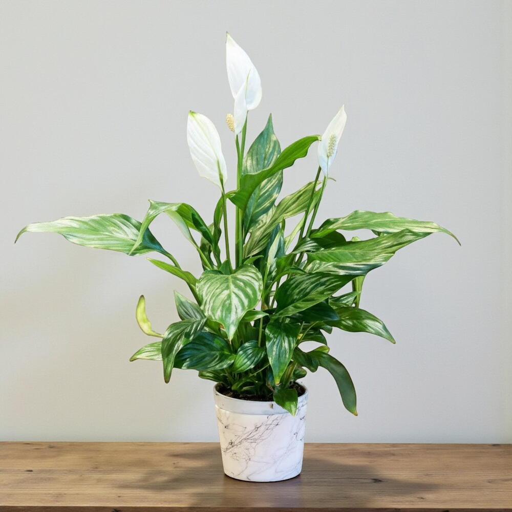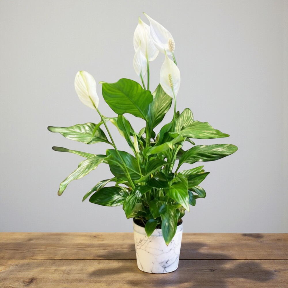 Zarafetin ve huzurun simgesi olan bu Spatifilyum (Barış Çiçeği), evinize veya ofisinize ferahlık katan doğal bir dekor öğesidir. Parlak yeşil yaprakları ve zarif beyaz çiçekleriyle ortama dinginlik ve tazelik katar. Kolay bakımı sayesinde bitki bakımına yeni başlayanlar için bile mükemmel bir seçimdir. Spatifilyum, havayı temizleme özelliğiyle de bilinir ve yaşam alanlarında daha sağlıklı bir atmosfer yaratır.