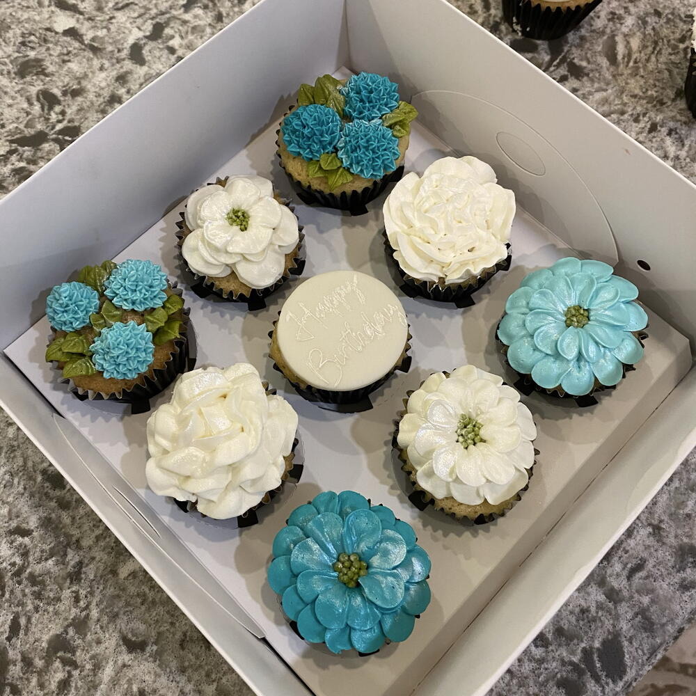 В коробке 9 капкейков. Цвета и виды цветов можно подобрать по вашему желанию. Можно добавить изображение и текст. Можно заказать для особых случаев. - Цвета и виды цветов можно подобрать по вашему желанию. Можно добавить изображения и текст. Доступно для особых случаев. В коробке 9 капкейков.