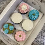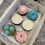 В коробке 6 капкейков. Цвета и виды цветов можно подобрать по желанию. Можно добавить изображение и надпись. Можно заказать для особых случаев. - Цвета и виды цветов можно подобрать по вашему желанию. Можно добавить изображения и текст. Доступно для особых случаев. В коробке 6 капкейков.