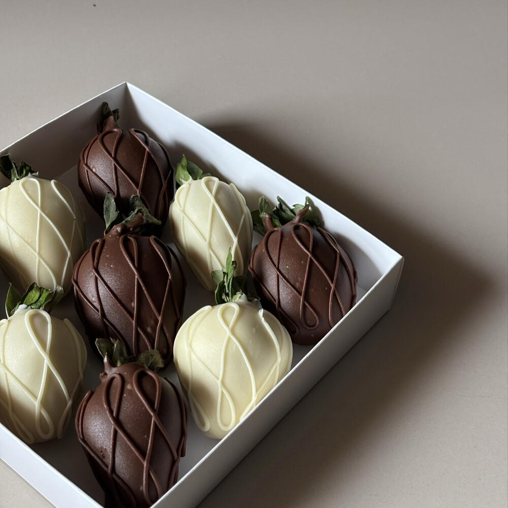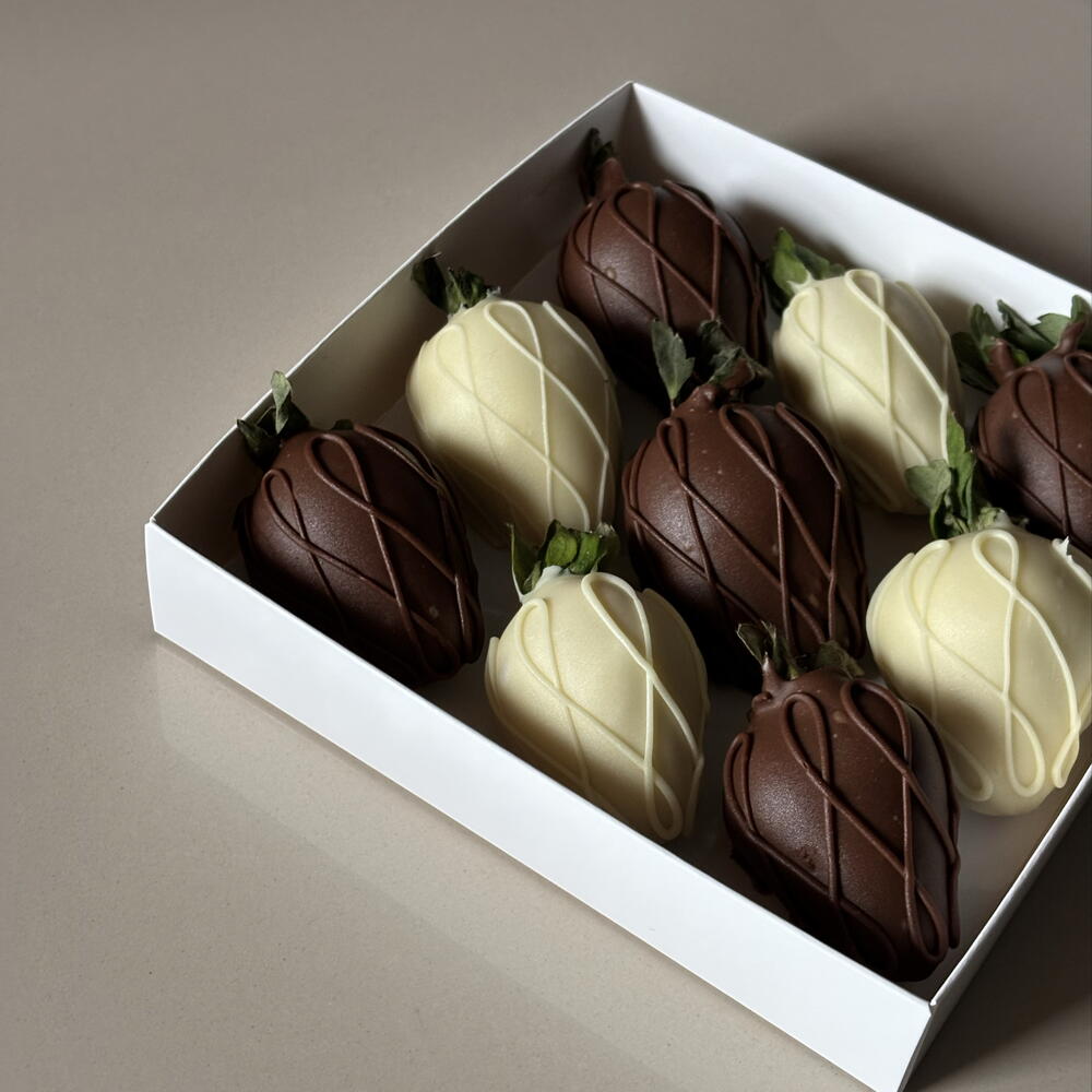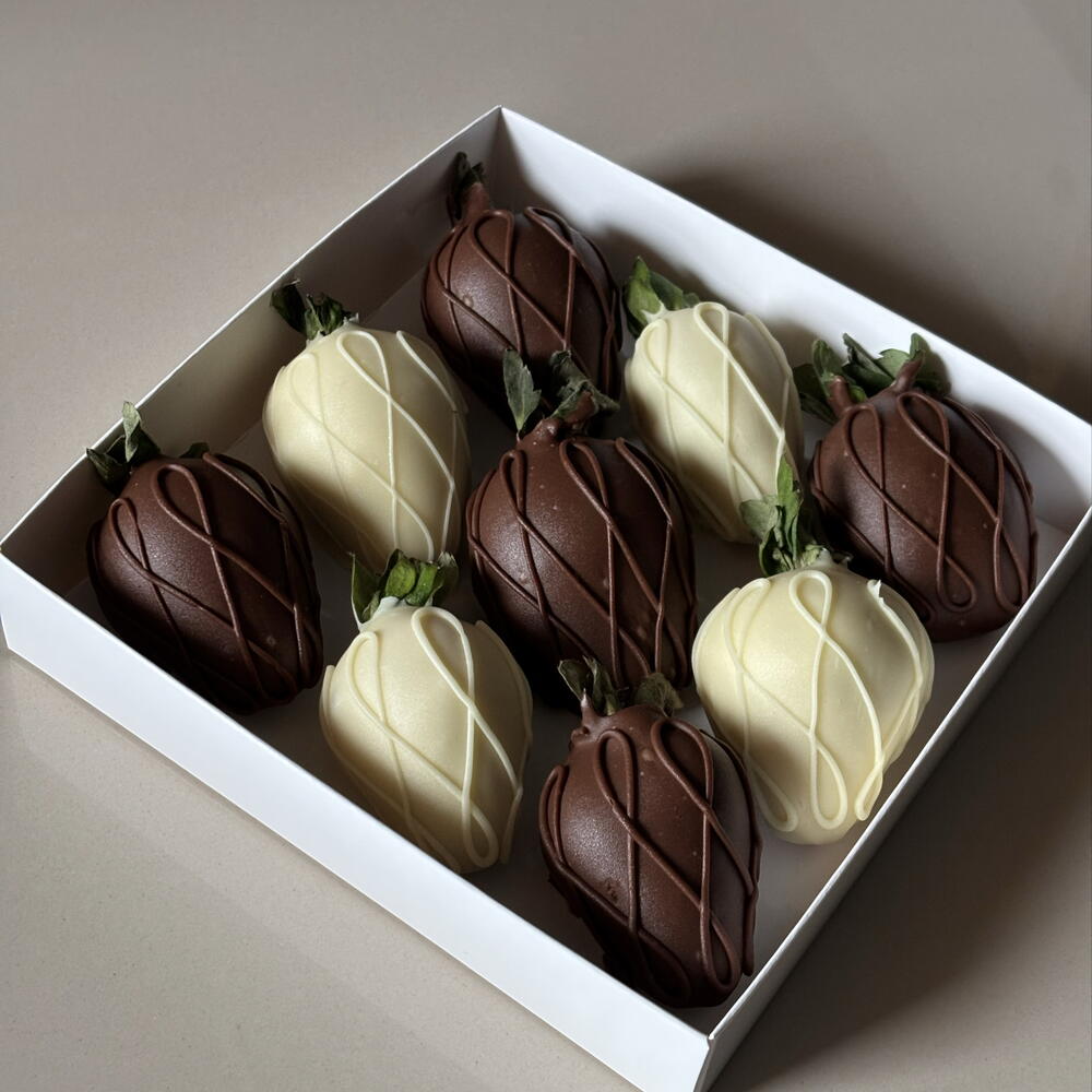 Самый красивый и низкокалорийный десерт. Нежное и праздничное угощение для вашей любимой мамы или девушки. Свежая клубника в шоколаде с натуральным составом, приготовленная из лучших ингредиентов. клубника, белый шоколад (сахар, какао-масло, сухой цельномолочный порошок, сывороточный порошок, эмульгаторы (соевый лецитин, полиглицерол полирицинолеат), соль, ароматизатор.)