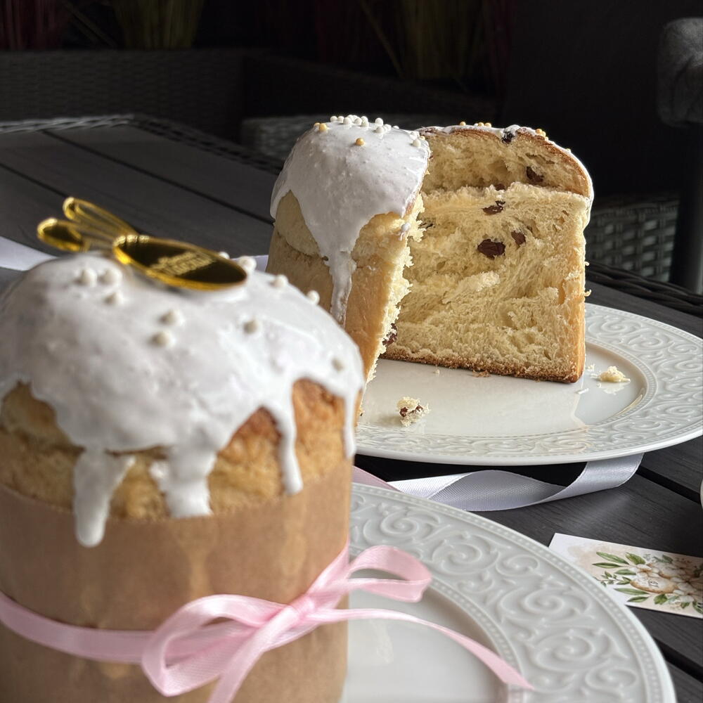 Пасхальный хлеб из дрожжевого теста с изюмом. Идеально взять с собой в гости, или мы можем сами доставить его вашим близким.