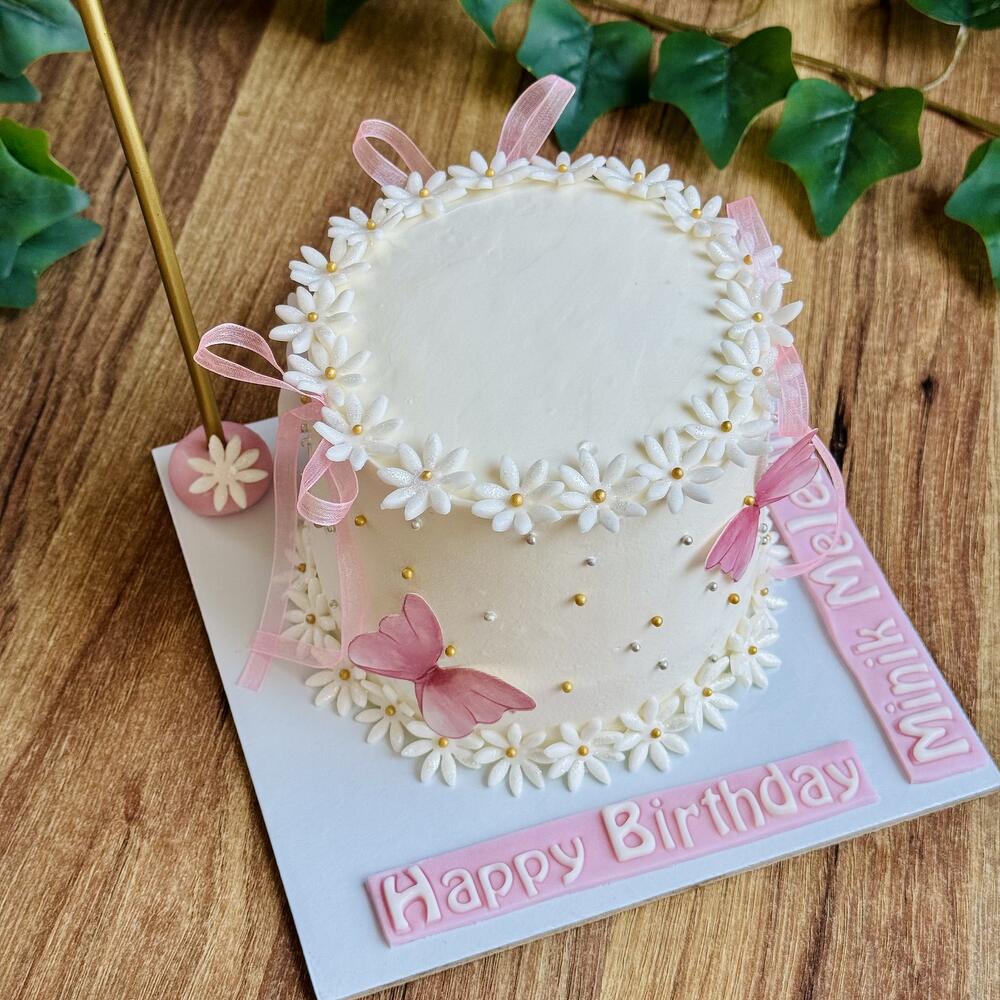 Торт с ромашками бабочками и лентой на 4/6 человек