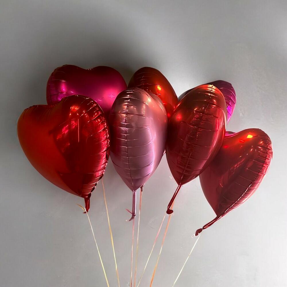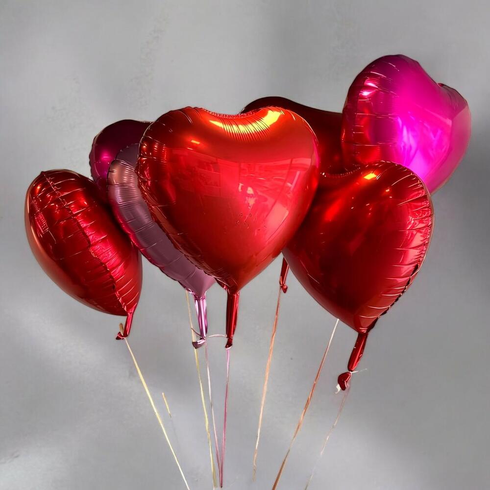 3 красных и 2 розовых сердечных гелиевых шара