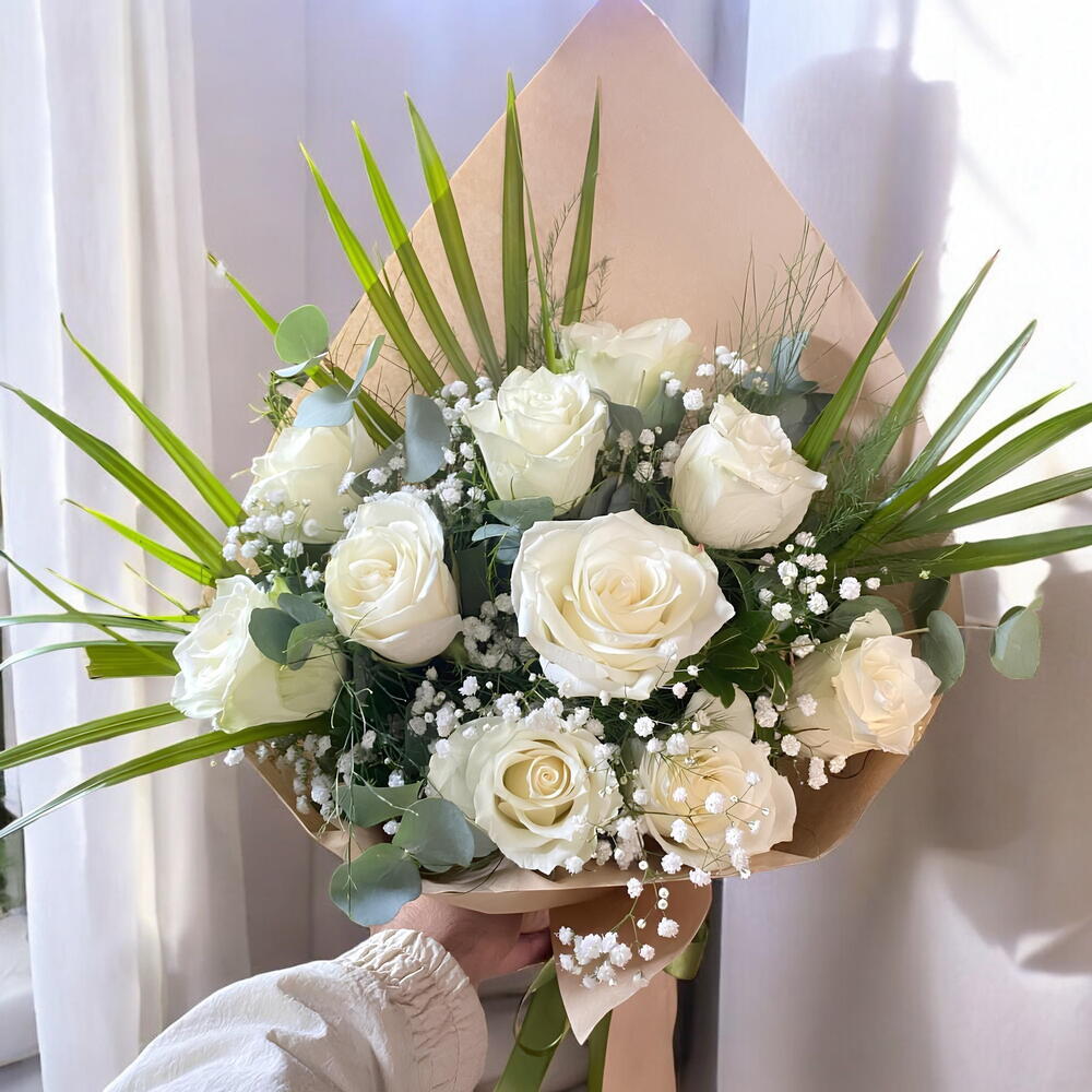beyaz gül - 10 шт. зелень - 3 шт. cipso - 5 шт.