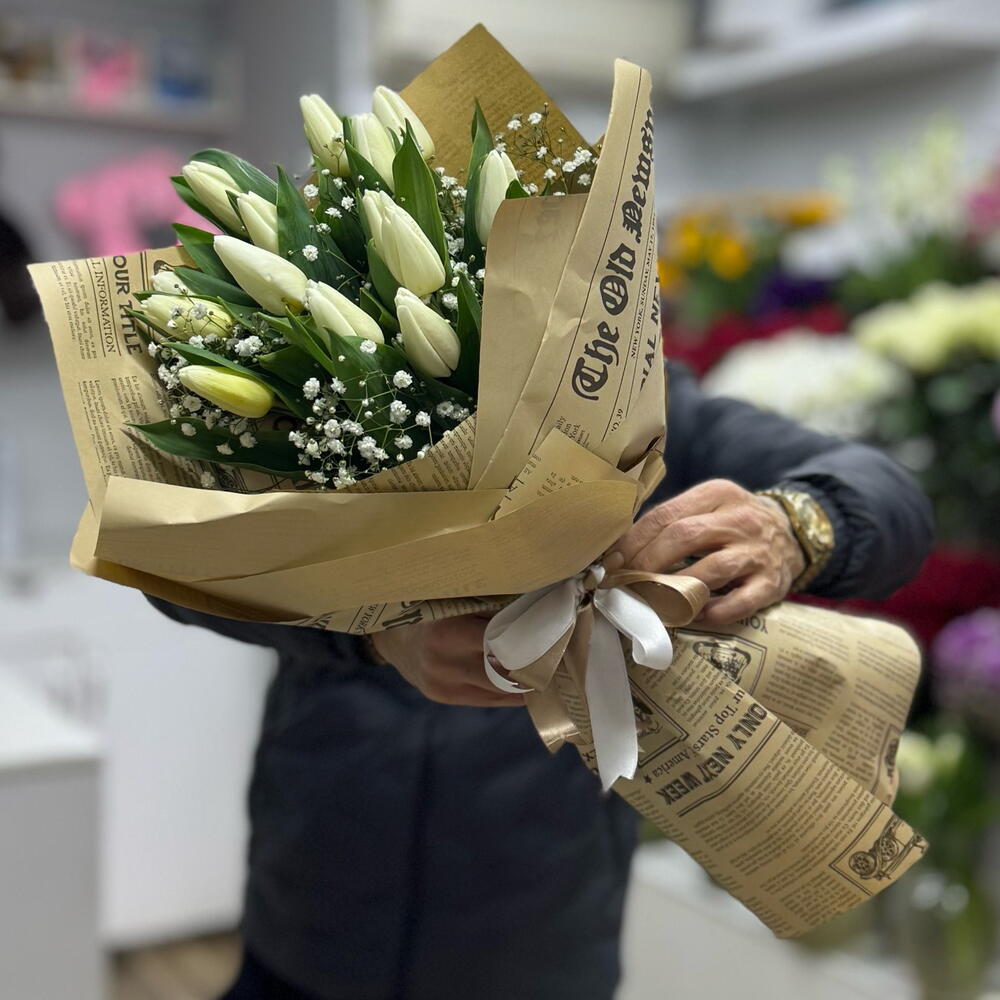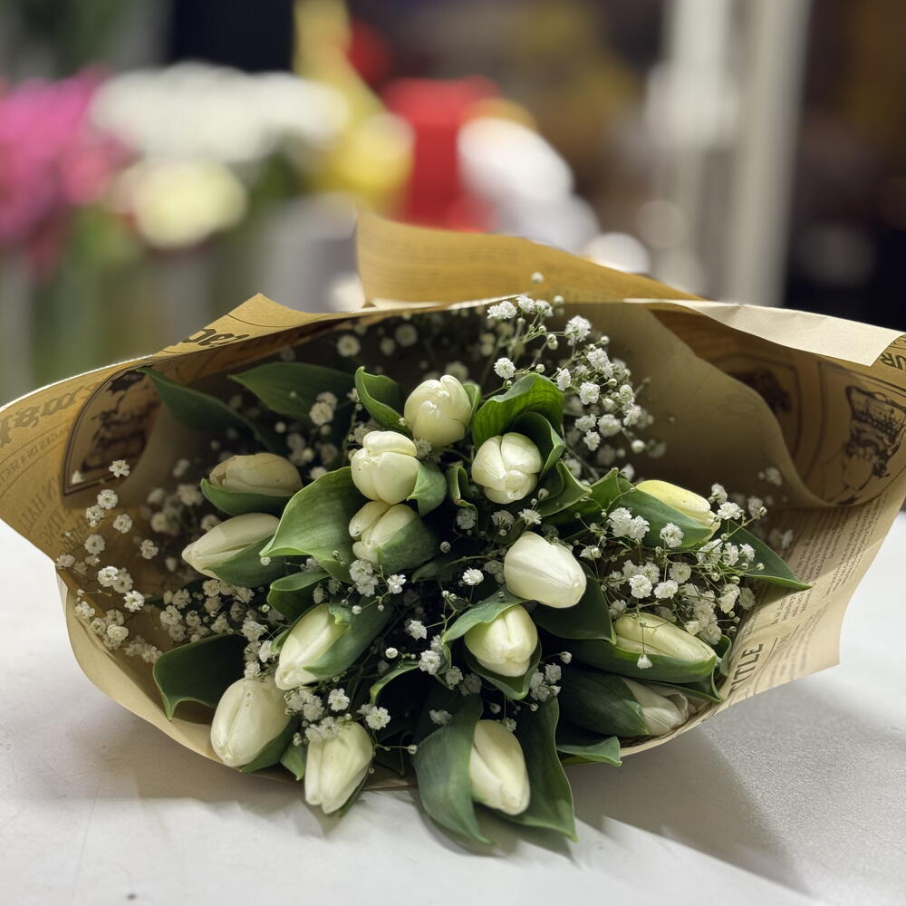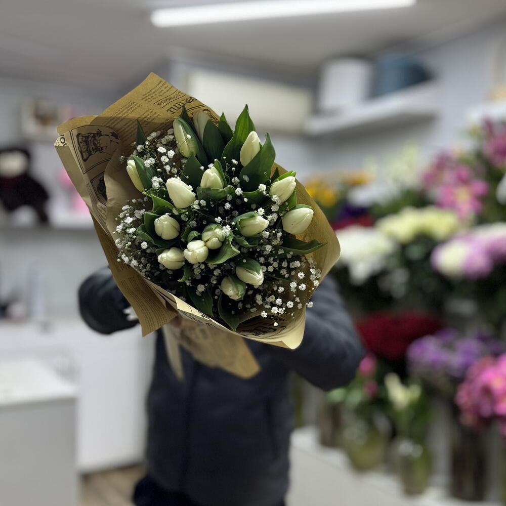 gipsofila - 15 шт. белый тюльпан - 15 шт. упаковка - 5 шт.