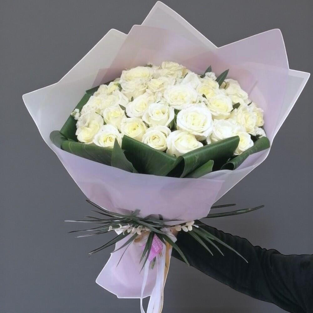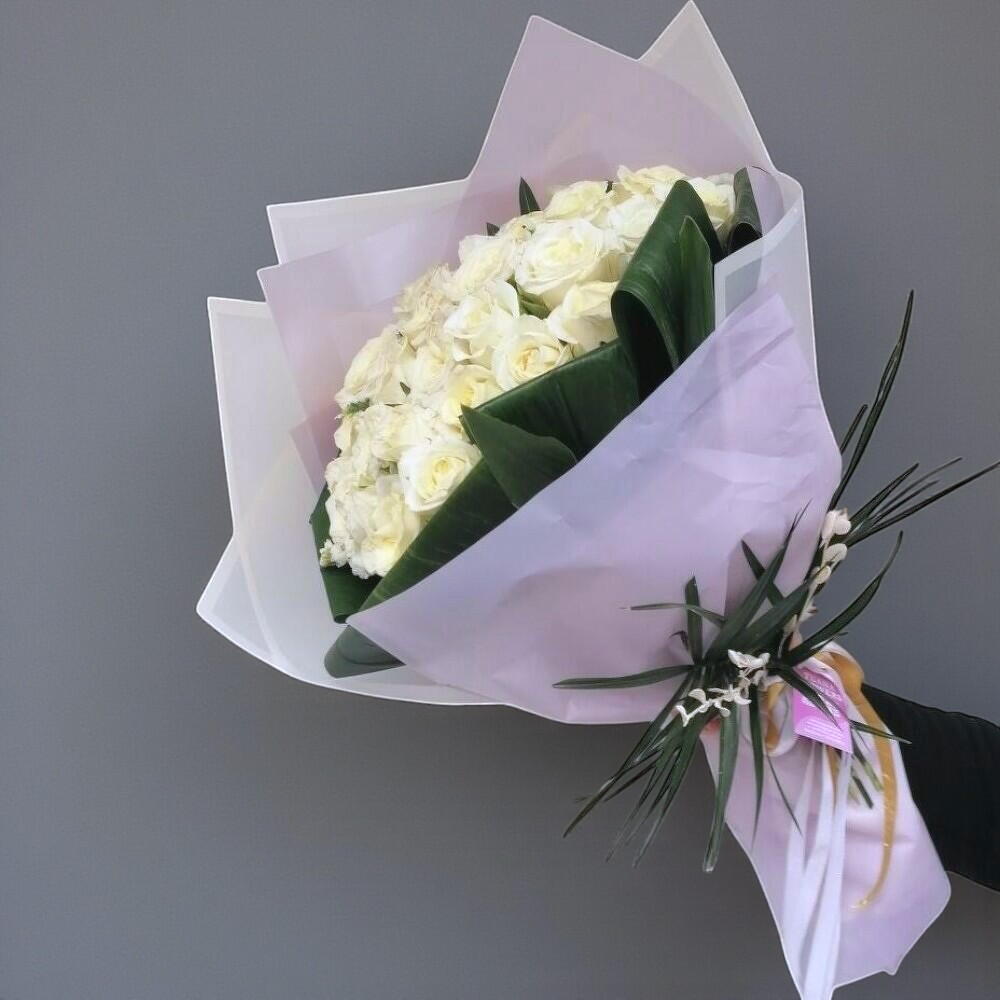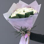 Этот изысканный и ослепительный букет демонстрирует чистую и невинную красоту белых роз. Это эффектное оформление, добавляющее элегантности вашим особым дням, привлекает внимание своим простым, но впечатляющим дизайном. Букет, дополненный стильной упаковкой и декоративными листовыми деталями, является превосходным выбором для свадьбы, помолвки, годовщины или значимого подарка. Он придаёт помещению ощущение свежести и романтики и поражает взгляд своей изящной фактурой. Чтобы букет служил дольше, рекомендуется держать его вдали от прямых солнечных лучей и периодически протирать слегка влажной тканью.