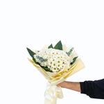Этот элегантный букет, состоящий из четырех пучков белых ромашек, символизирующих чистоту, естественность и искренность, добавит свежести любому месту благодаря своей простой элегантности. Созданный из ярких белых ромашек, зеленых листьев и эвкалипта, он выглядит естественно и эстетично. Букет, упакованный в элегантную светлую упаковку и перевязанный тонкой лентой, идеально подходит для дня рождения, выражения благодарности, пожеланий выздоровления, поздравлений с новой работой или просто для трогательного сюрприза. Он тщательно составляется из свежих цветов ежедневно и доставляется в стильной презентации.