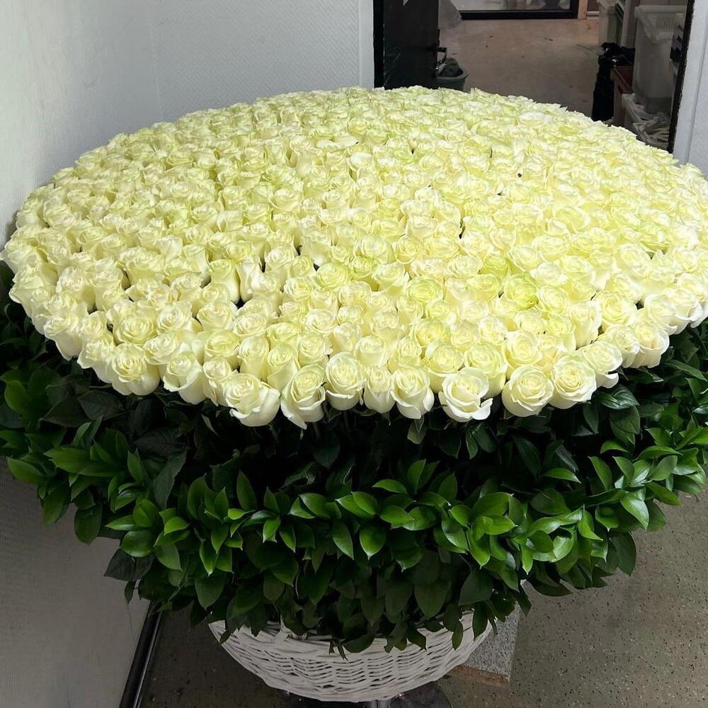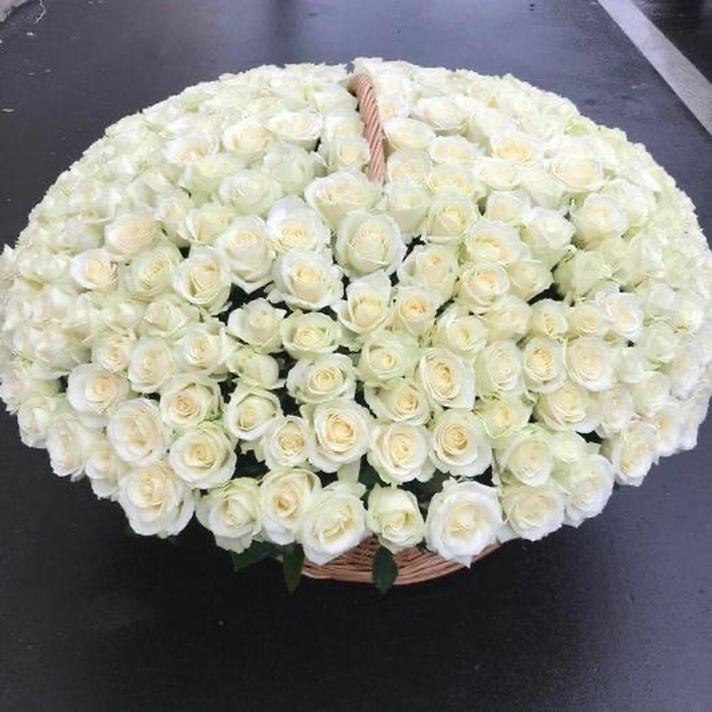 401 white roses basket