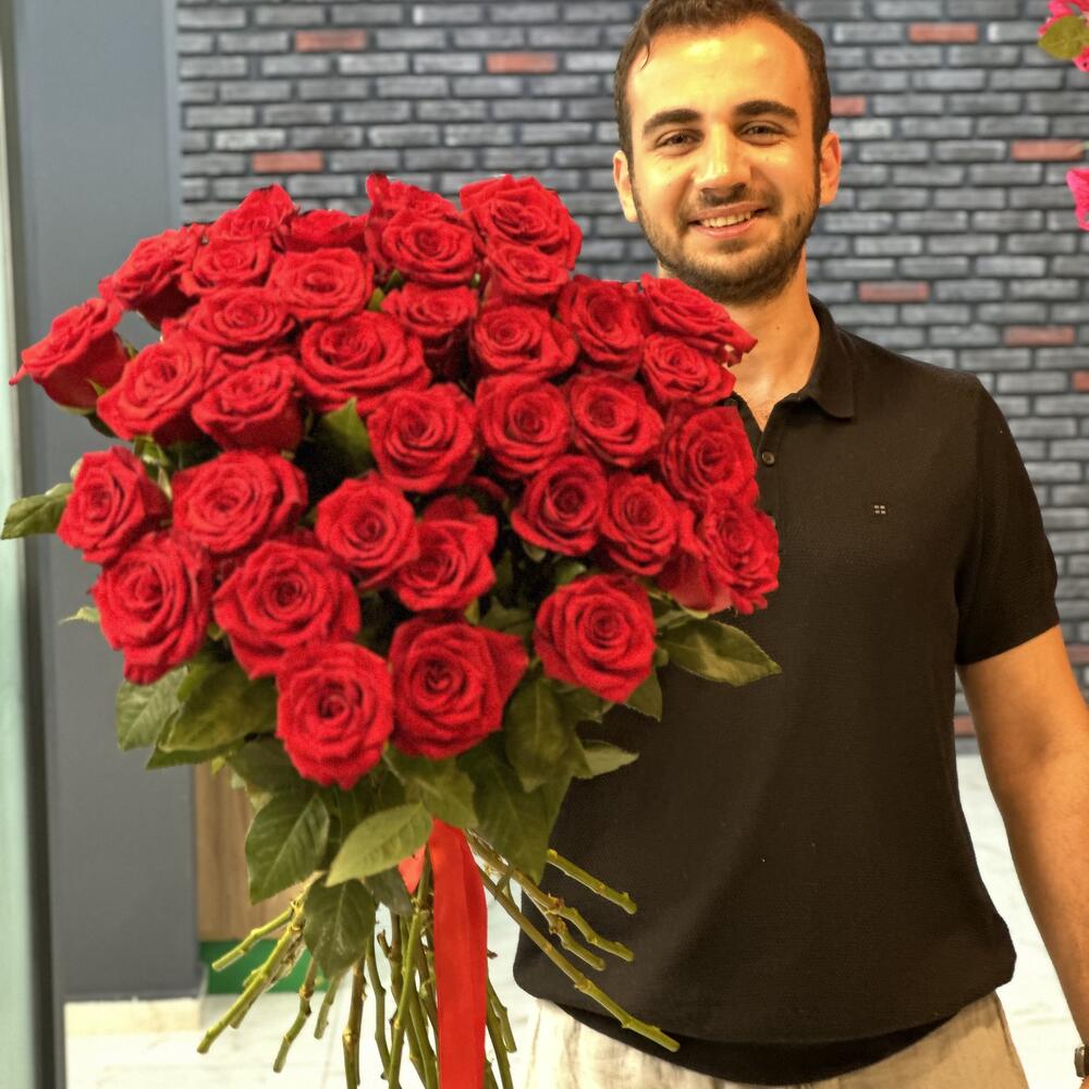 Этот изящный букет содержит 41 свежесрезанную красную розу длиной 70 см. Эти розы, каждая из которых отобрана с большим вниманием, радуют и глаз, и сердце. Обладая силой выражать любовь, страсть и волнение, этот букет красных роз поможет вам в полной мере передать свои чувства близким в любой особенный день. Уникальная красота этих цветов словно подарит тому, кто их получит, настоящую сказку. Если вы ищете идеальный сюрприз или впечатляющий подарок, этот очаровательный букет красных роз может быть именно тем, что вы ищете.
