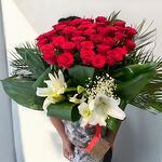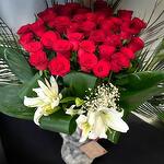 Эта великолепная композиция из 41 красной родосской розы и четырёх белоснежных лилий станет подарком, который позволит вам выразить свою любовь самым элегантным образом. Нежные лепестки феникса и белые лилии делают эту композицию ещё более особенной, отражая элегантность и изящество в каждой детали.