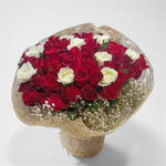 красная роза - 32 шт. beyaz gül - 9 шт. cipso - 15 шт.