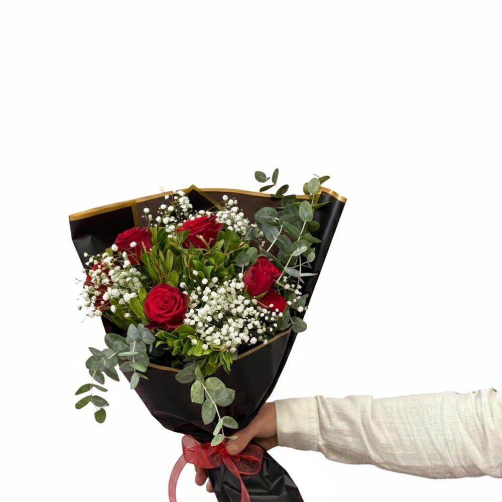 Для тех, кто ищет простой, но впечатляющий подарок, этот элегантный букет из пяти красных роз позволит красиво выразить свои чувства благодаря изысканному дизайну. Романтическое значение красных роз дополняют гипсофила и эвкалипт, создавая современный и эстетичный вид. Составленный с особой тщательностью и представленный в специальной черно-золотой упаковке, этот букет идеально подходит для дней рождения, годовщин, выражения благодарности, пожеланий скорейшего выздоровления или просто чтобы сказать: «Я думаю о тебе». Он ежедневно изготавливается из свежих цветов и доставляется в элегантной упаковке.