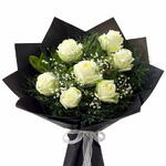 Символ чистоты и изящества — 7 белых роз, аккуратно оформленных с гипсофилой и зелёной зеленью. Стильная чёрная упаковка и изящная лента делают его эффектным подарком для особых случаев. Это премиальный выбор для дня рождения, годовщины, благодарности и всех особых моментов. При выборе опции «доставка в тот же день» доставляется вашим близким свежим и с заботой.