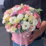 Этот уникальный набор в коробке представляет собой утончённый и стильный образ. Изысканное сочетание 5 нежных розовых роз и 5 элегантных белых роз создаёт красочную палитру. 5 роскошных спрей-роз придают композиции изысканность. 7 романтических эустом и 6 эвкалиптов вносят живость в уникальность букета - настоящее произведение искусства! Неотразимое очарование и декоративность представлены 3 хризантемами и 5 очаровательными диантусами. Этот букет — идеальный выбор, чтобы подарить любимому человеку частичку вашей любви и восхищения.