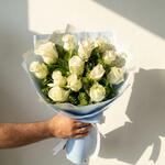 Этот изысканный букет привлекает внимание своей натуральностью и простой красотой в любой обстановке. Композиция, составленная из 13 свежих и качественных импортных белых роз, сочетает в себе простую элегантность и изящество. Белые розы символизируют невинность и умиротворение, позволяя вам выразить свои чувства к близким в самом лучшем виде. Букет создает изысканную атмосферу и одновременно является отличным выбором для празднования любого особого момента. Розы выделяются своей эстетикой и натуральной красотой, а эта особая композиция содержит изысканность и элегантность в каждой детали. Рекомендации по уходу Букет имеет довольно пышный и крупный дизайн. Чтобы продлить жизнь белых роз, регулярно меняйте воду и храните их в месте, защищенном от прямых солнечных лучей. Розы любят влажную среду, но избегайте чрезмерного полива. Таким образом, ваши розы долго останутся свежими и сохранят свою красоту.