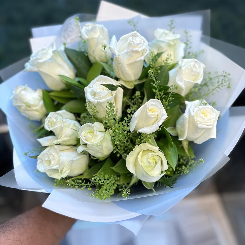Этот изысканный букет привлекает внимание своей натуральностью и простой красотой в любой обстановке. Композиция, составленная из 13 свежих и качественных импортных белых роз, сочетает в себе простую элегантность и изящество. Белые розы символизируют невинность и умиротворение, позволяя вам выразить свои чувства к близким в самом лучшем виде. Букет создает изысканную атмосферу и одновременно является отличным выбором для празднования любого особого момента. Розы выделяются своей эстетикой и натуральной красотой, а эта особая композиция содержит изысканность и элегантность в каждой детали. Рекомендации по уходу Букет имеет довольно пышный и крупный дизайн. Чтобы продлить жизнь белых роз, регулярно меняйте воду и храните их в месте, защищенном от прямых солнечных лучей. Розы любят влажную среду, но избегайте чрезмерного полива. Таким образом, ваши розы долго останутся свежими и сохранят свою красоту.