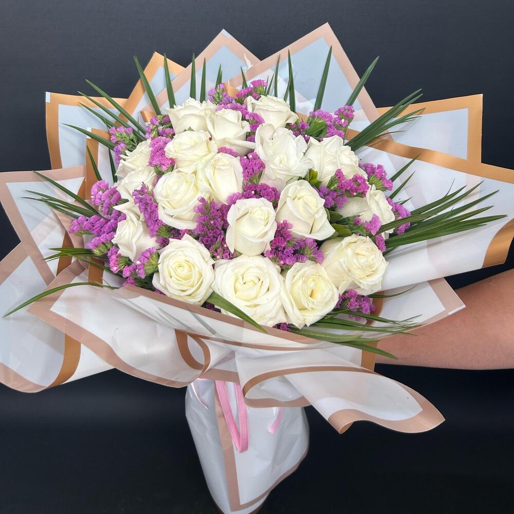 Стильный дизайнерский букет из 30 белых роз