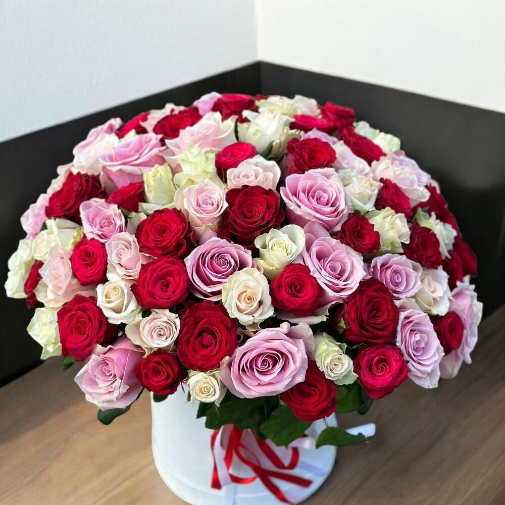 Белая коробка с ассорти из 101 розы.