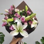 Этот волшебный букет цветов составлен из 10 изящных белых лилий и 40 ярких розовых лизиантусов. Эта поразительная комбинация может быть идеальным подарком по любому поводу. Букет, идеальный для того, чтобы впечатлить ваших близких, покорит сердца своим невероятным ароматом и внешним видом.