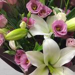 Букет белых лилий и розовых лизиантусов