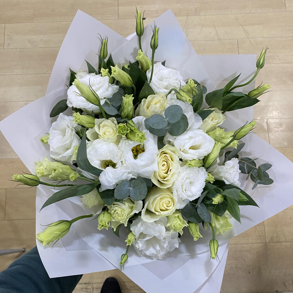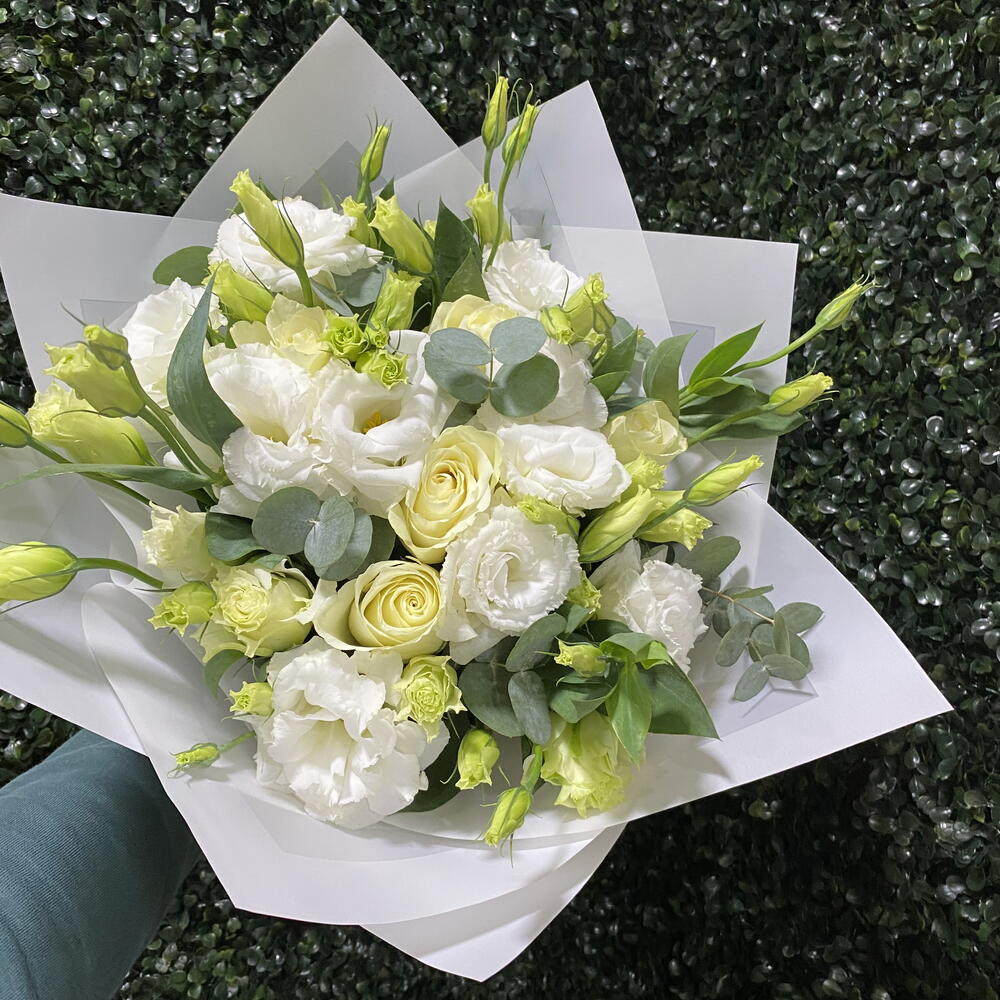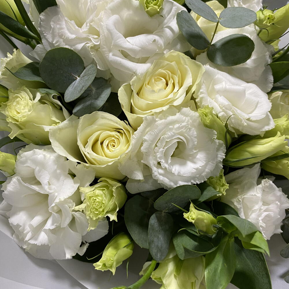 okaliptüs - 5 шт. beyaz gül - 7 шт. beyaz lisiantus - 9 шт.