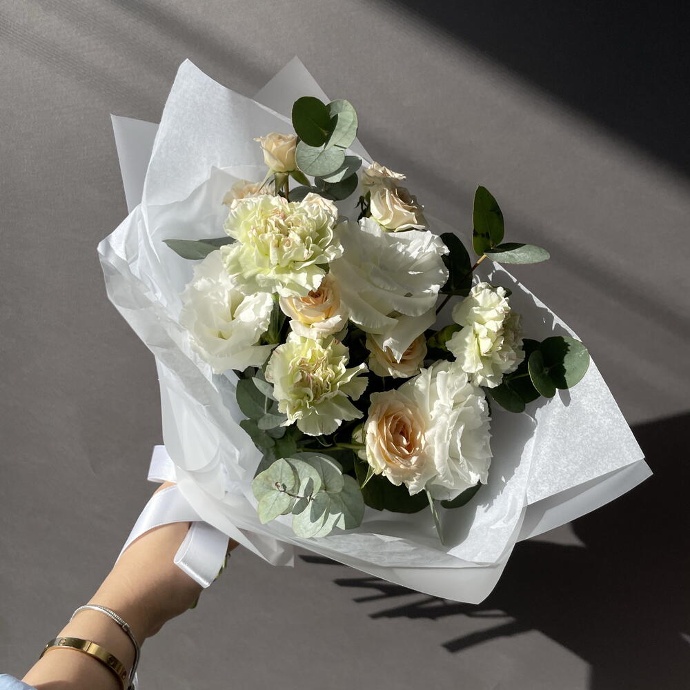 Eustoma - 2 шт. Eucalyptus - 1 шт. Spray rose - 2 шт. dianthus - 3 шт.