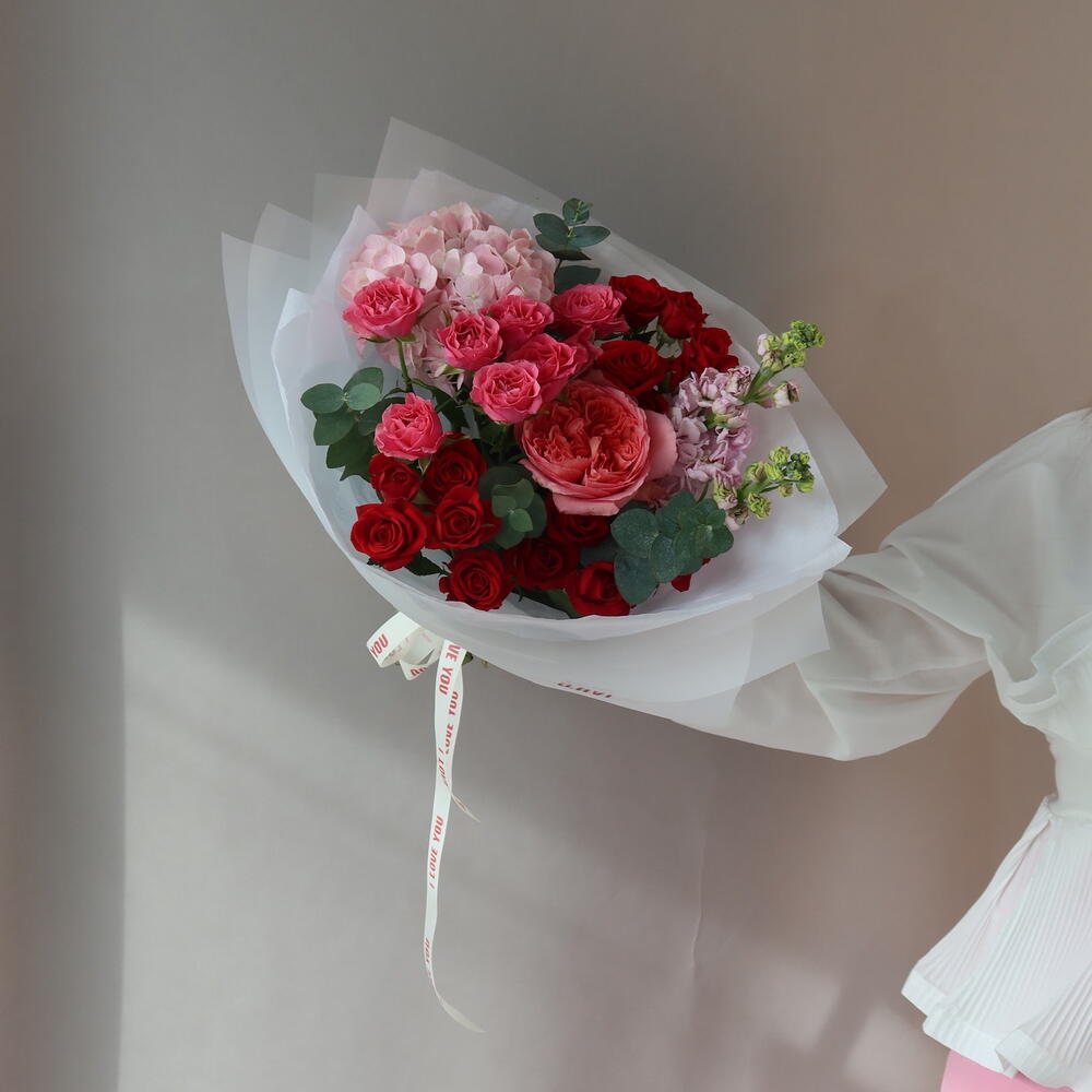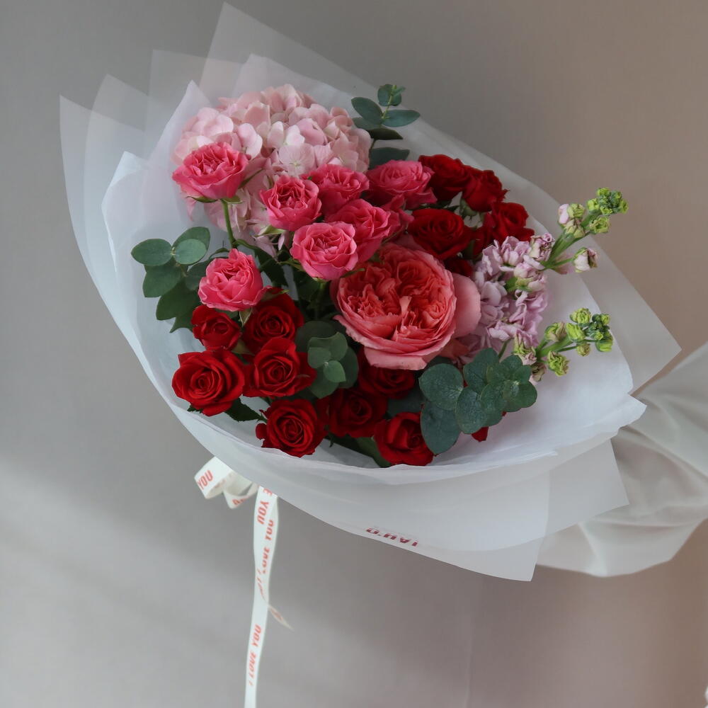 Bu zarif Karışık Buket, bir adet göz alıcı gortenzya, iki adet güzel kokulu mattiola, dört adet narin kırmızı kırmızı gül, tazeleyici bir dokunuş sağlayan bir adet eukalipt miksi, rejeneratif bir adet pink expression ile süslenmiş romantik bir bukettir. Tüm çiçekler, estetik bir görünüm sağlamak için özenle seçilmiş bir kutuda yerleştirilir. Sevdiklerinize ne kadar özeldiklerini göstermenin en zarif yolu.