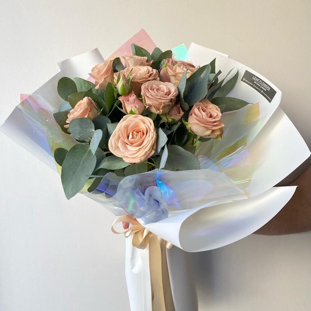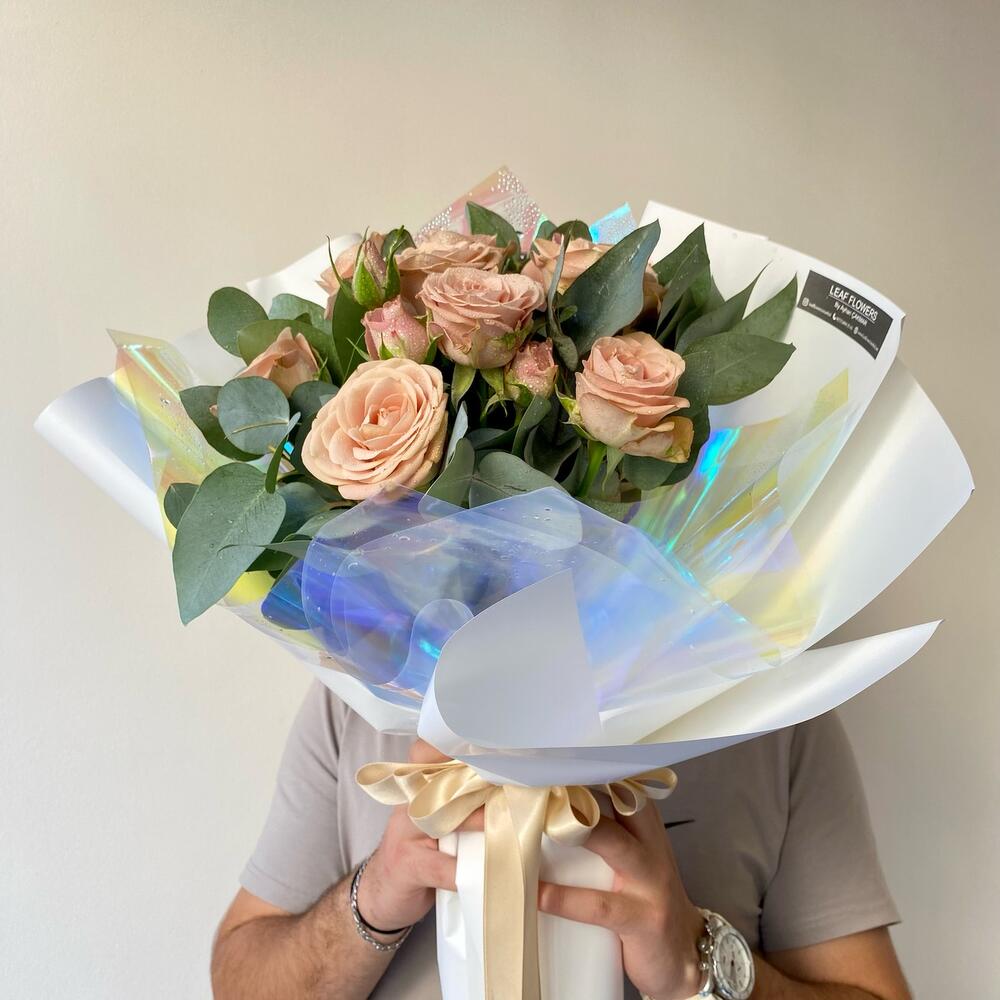 Eucalyptus - 10 шт. капучино розы - 9 шт.