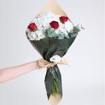 Этот стильный и изящный букет украшен 9 белыми хризантемами, 3 красными розами и 3 веточками эвкалипта. Эта тщательно продуманная комбинация выделяет букет и своей классической изящностью, и насыщенностью современного дизайна. Идеальный выбор как для того, чтобы поздравить близких с их особыми днями, так и чтобы сделать обычный день особенным. Этот изысканный букет поможет вашим близким почувствовать, насколько они вам дороги.