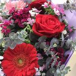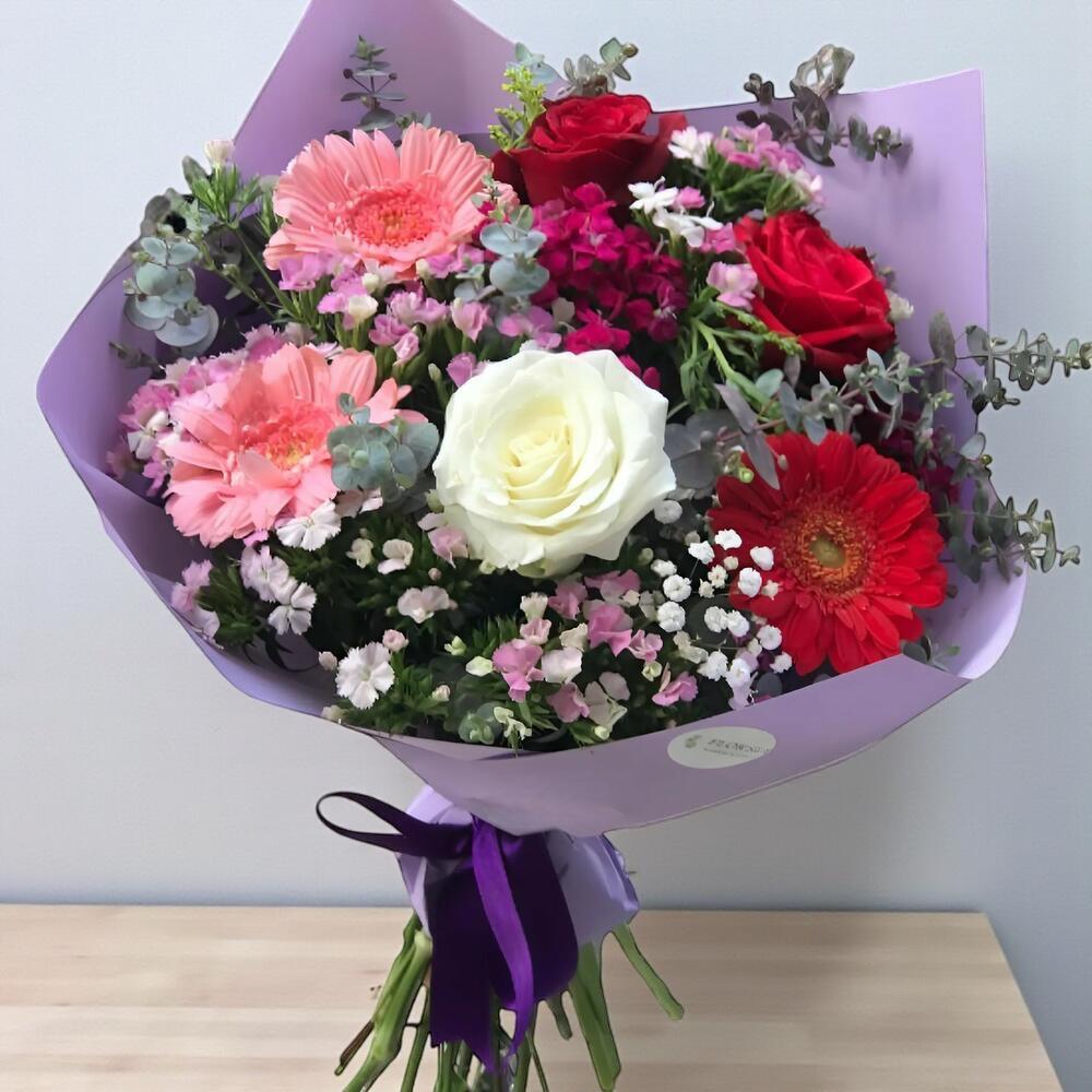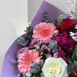 красная роза - 2 шт. розовая гербера - 2 шт. beyaz gül - 1 шт. красная гербера - 2 шт. гюснюйусуф - 4 шт.