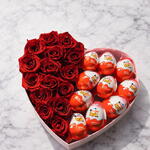 Самая сладкая сторона любви Изящество красных роз и радость Kinder Joy объединились в одной коробке. Специально создано для тех, кто хочет сделать своим близким одновременно эмоциональный и сладкий сюрприз. Романтичная и элегантная презентация в форме сердечка делает этот подарок впечатляющим с первого взгляда. Особенно: День святого Валентина День рождения Годовщина Подарки в знак извинения и сюрпризные подарки идеальный выбор.