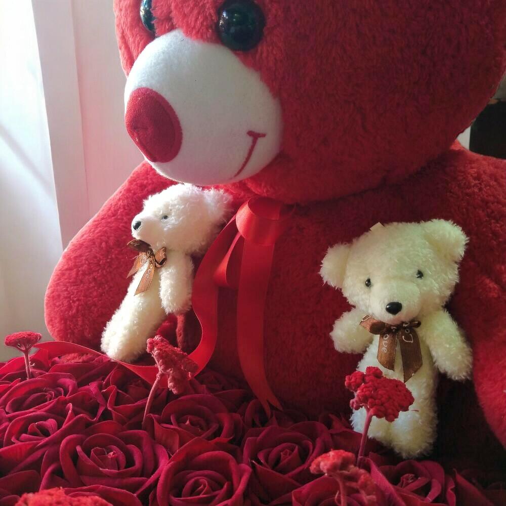 красная роза - 101 шт. мишка мини игрушка - 1 шт. плюшевый медведь 50 см - 1 шт. креативные сухие цветы - 30 шт.