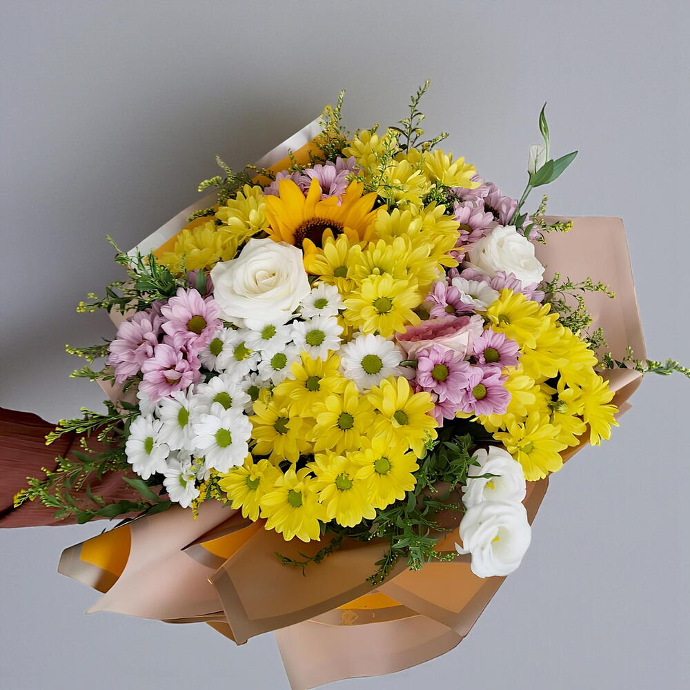 Этот красочный и живой смешанный букет состоит из 25 жёлтых ромашек, 25 розовых ромашек и 5 белых роз. Этот красивый букет поставляется в комплекте по 20 штук и принесёт вашим близким радость и счастье. Идеальный выбор для тех, кто хочет сделать приятный сюрприз. Отличная альтернатива, чтобы произвести как впечатляющее, так и стойкое впечатление.