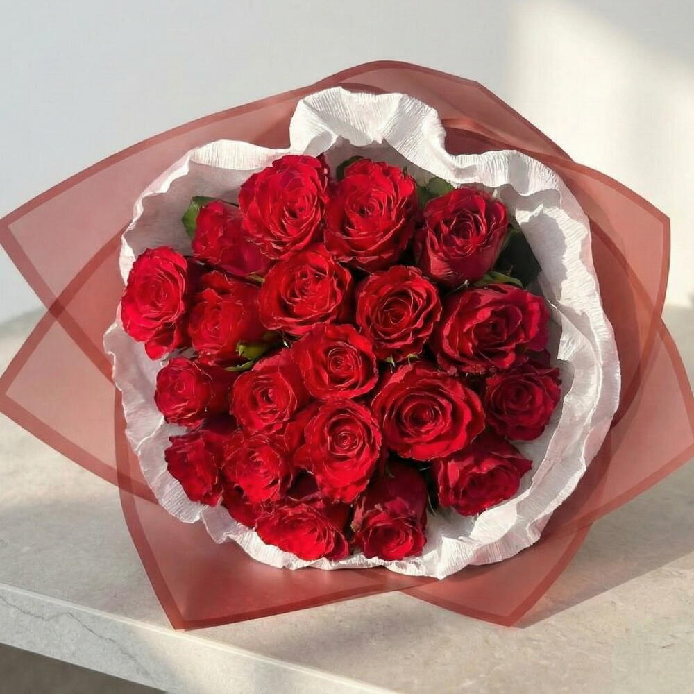 красная роза - 21 шт. букет в бумажной упаковке - 1 шт.
