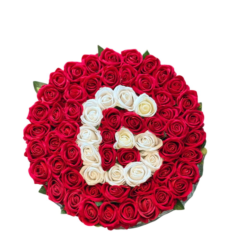 Персонализированная композиция искусственных роз с буквенным дизайном – красные белые розы
