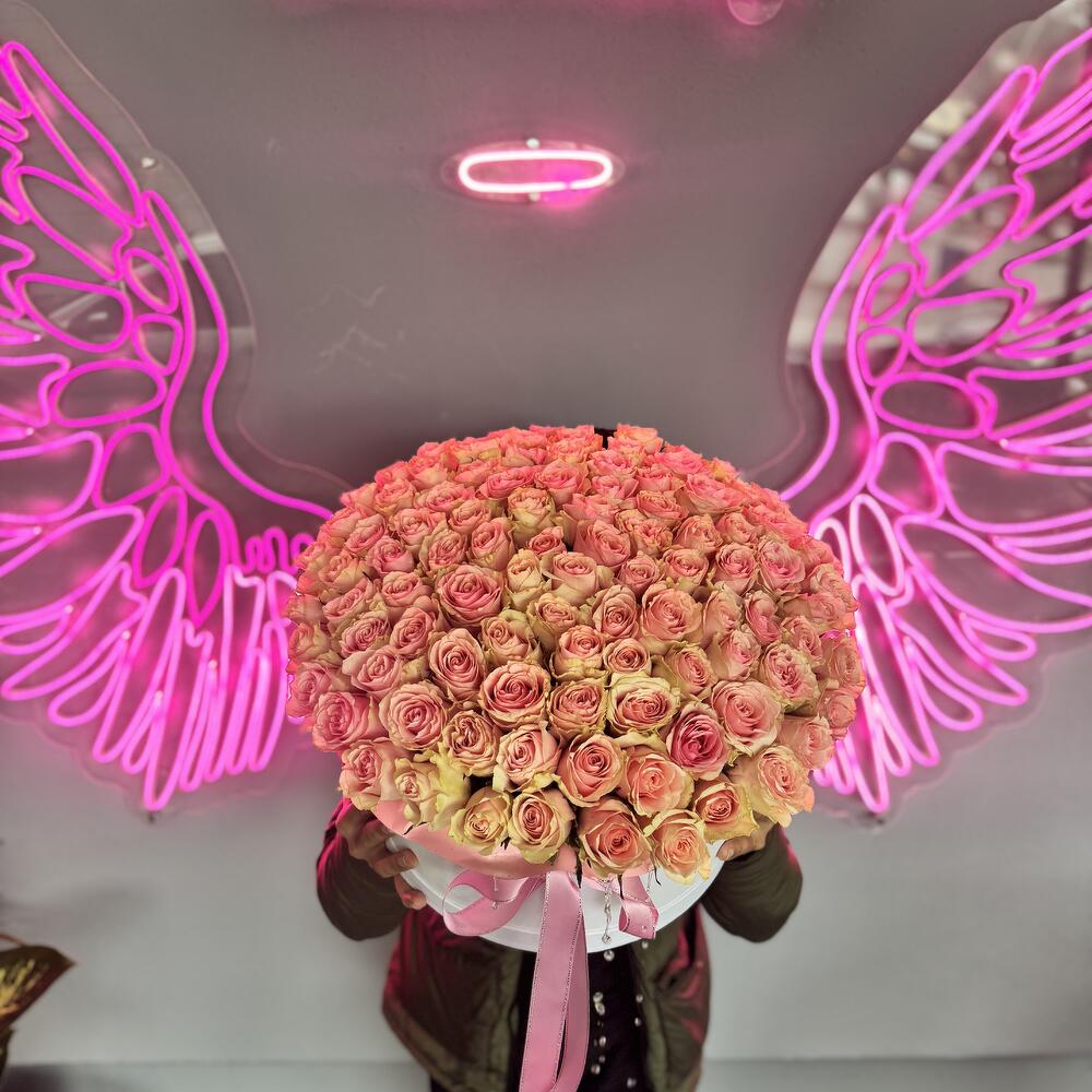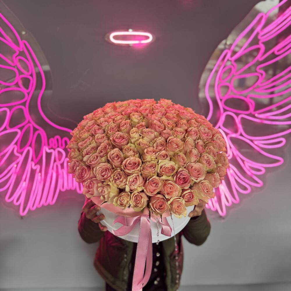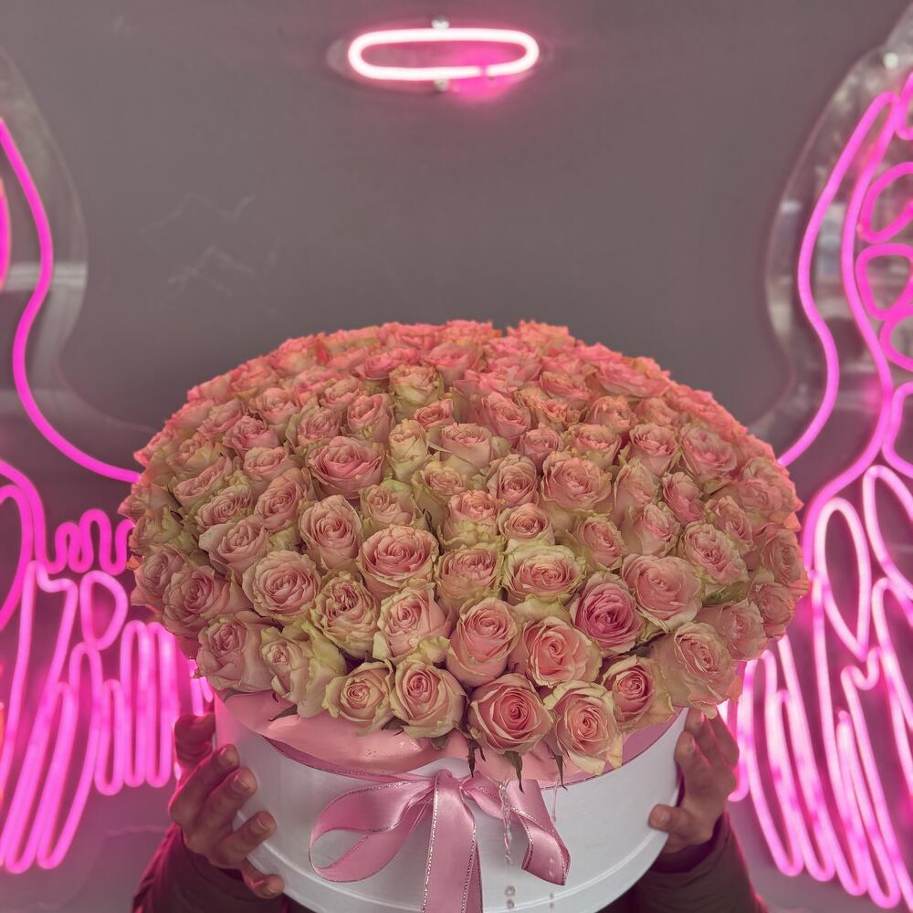 коробка из 101 импортной розовой розы