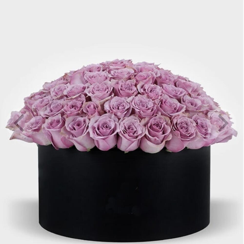 черная коробка - 1 шт. лиловая роза - 121 шт.