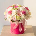 Аранжировка розовых роз и лизиантуса в коробке — стильная цветочная коробка, которая своими романтическими тонами и изящным дизайном делает особые моменты незабываемыми. Этот современный букет размером 35x35 см сочетает в себе романтическую текстуру ярких розовых роз и нежную элегантность белых и розовых лизиантусов. Благодаря пастельным переходам цветов и округлой форме он представляет собой подарок с высокой декоративной и эмоциональной ценностью. 11 розовых роз символизируют любовь и восхищение, 11 белых лизиантусов олицетворяют чистоту и изящество. 11 розовых лизиантусов создают романтическую и тёплую атмосферу, придавая композиции объём и эстетическую целостность. Это изящная композиция, которую можно выбрать в качестве подарка на день рождения, годовщину, День святого Валентина, поздравление с рождением ребёнка или как искренний знак благодарности.