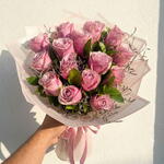 Букет ароматных розовых роз — это эксклюзивный моно-букет, сочетающий элегантность и романтику. Эта элегантная композиция размером 35x60 cm создаёт завораживающий вид благодаря мягким розовым тонам на солнце. 15 тщательно отобранных импортных роз своей свежестью и приятным ароматом позволят вам наиболее изящно выразить свои чувства. 11 листьев рускуса, придающих букету объём и естественную нотку, оживляют композицию; 9 фиолетовых лимониумов создают романтичный и изящный контраст. С современным оформлением и пастельной лентой он является идеальным подарком как на день рождения, годовщину, День святого Валентина, так и для особых торжеств.
