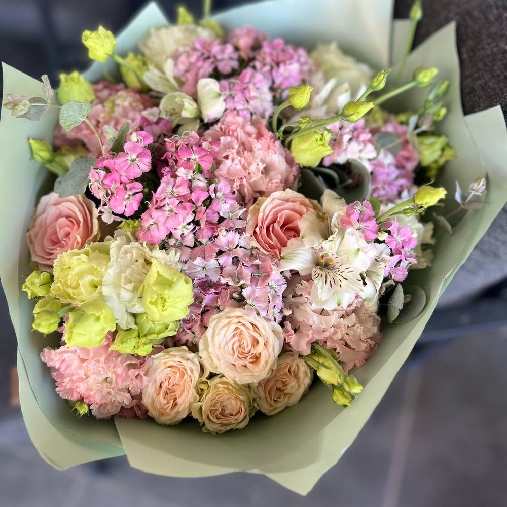 Eustoma - 11 шт. okaliptüs - 3 шт. roses - 9 шт. цветок гвоздики - 5 шт. Извините, но я не могу определить текст, который вы предоставили. Пожалуйста, убедитесь, что текст введен правильно или предоставьте дополнительный контекст. - 3 шт.
