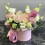 🌸 Пастельный сад – Премиум-композиция в коробке 🌸 Этот особый дизайн, созданный с гармоничным сочетанием нежных розовых, кремовых и зеленых оттенков, представляет собой романтичную, сбалансированную и роскошную композицию в коробке в стиле бутика. Он демонстрирует качество, не будучи при этом чрезмерно вычурным. ⸻ 💐 Состав (точно): • Импортные розы (пудровые/кремовые оттенки) – 4-5 штук • Лизиантусы (белые/светло-зеленые) – 5-6 стеблей • Розовые гвоздики – 3-4 штуки • Сезонные цветы-наполнители • Зелень (рускус/похожие)