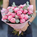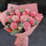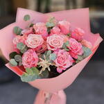 astilbe - 4 шт. розовые розы - 21 шт. ветки эвкалипта - 7 шт.