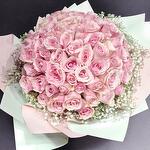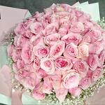 розовые розы - 61 шт. букет гипсофилы - 10 шт.