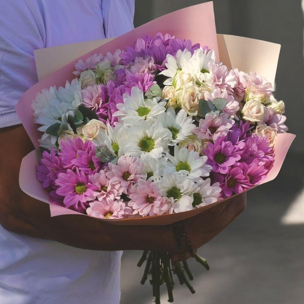 Bright, cheerful, and full of charm, this bouquet brings together pastel and vibrant shades of chrysanthemums and miniature roses for a refreshing and uplifting vibe. It’s a perfect gift to celebrate any occasion, from birthdays to just-because moments. The lively blend of lilac, pink, and white blooms creates a playful yet graceful aesthetic. To keep this bouquet looking fresh, place it in clean water, trim the stems diagonally every couple of days, and avoid exposure to direct sunlight and drafts.