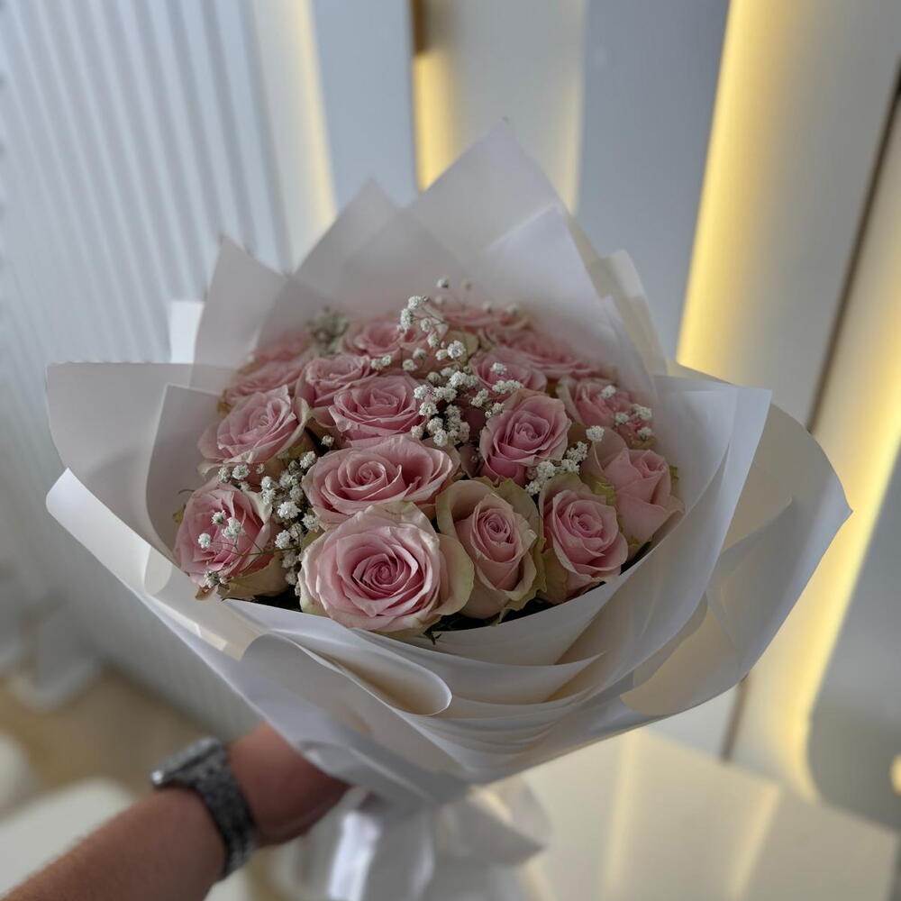 Этот особый цветочный букет создаёт поразительную композицию из 20 чарующих розовых роз и 5 изящных гипсофил. Сочетание этих цветов создает настолько изысканный и элегантный дизайн, что является прекрасным выбором для выражения искренних чувств. Независимо от повода, он идеален, чтобы впечатлить особого человека или подарить себе восхитительный подарок.